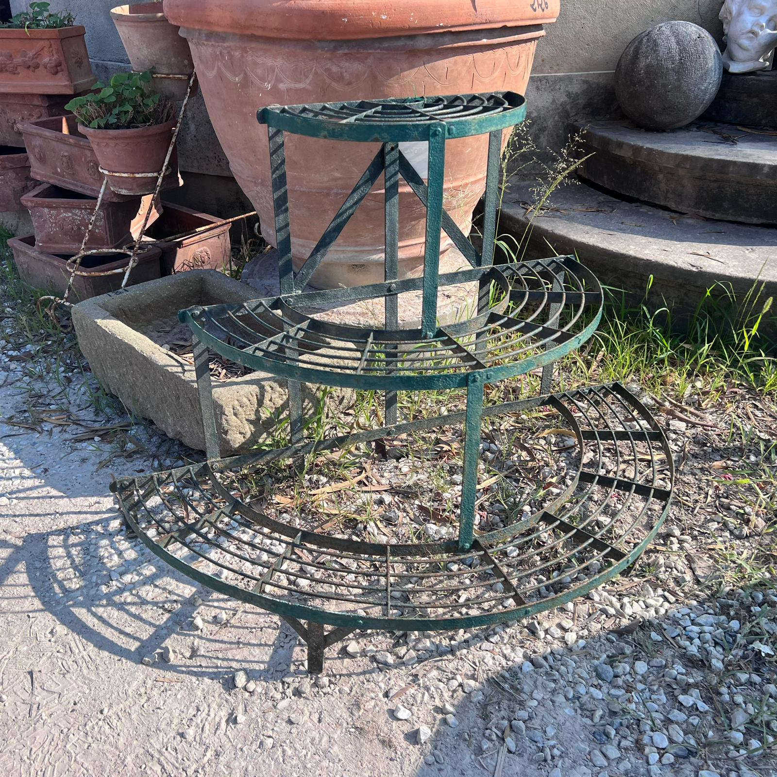 Antique iron plant pot holder recovered.