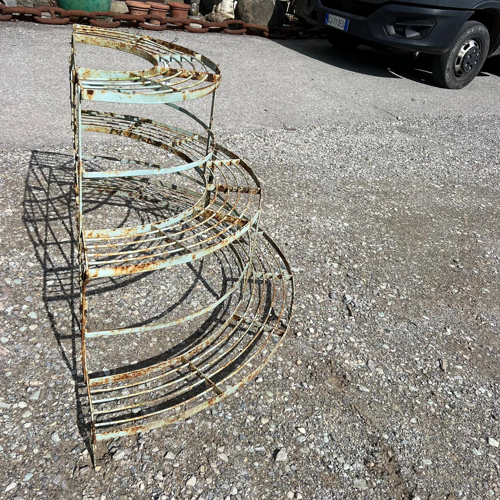 Antique iron plant pot holder recovered.