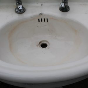 Antico lavandino da bagno in ceramica di recupero, di produzione inglese.
